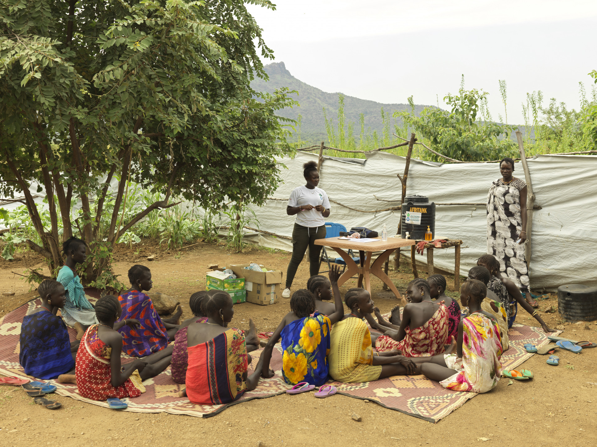 “This is my first mission, and I’ve traveled a long way to come and serve my people,” says Queen Taban, 23. She brings emergency mental health support to people who have been forced to flee their homes due to conflict and now live in the isolated hills of Maruwo, South Sudan. The counselor is the only female member of Action Against Hunger’s intrepid emergency team, which has been deployed to provide holistic support to displaced families.